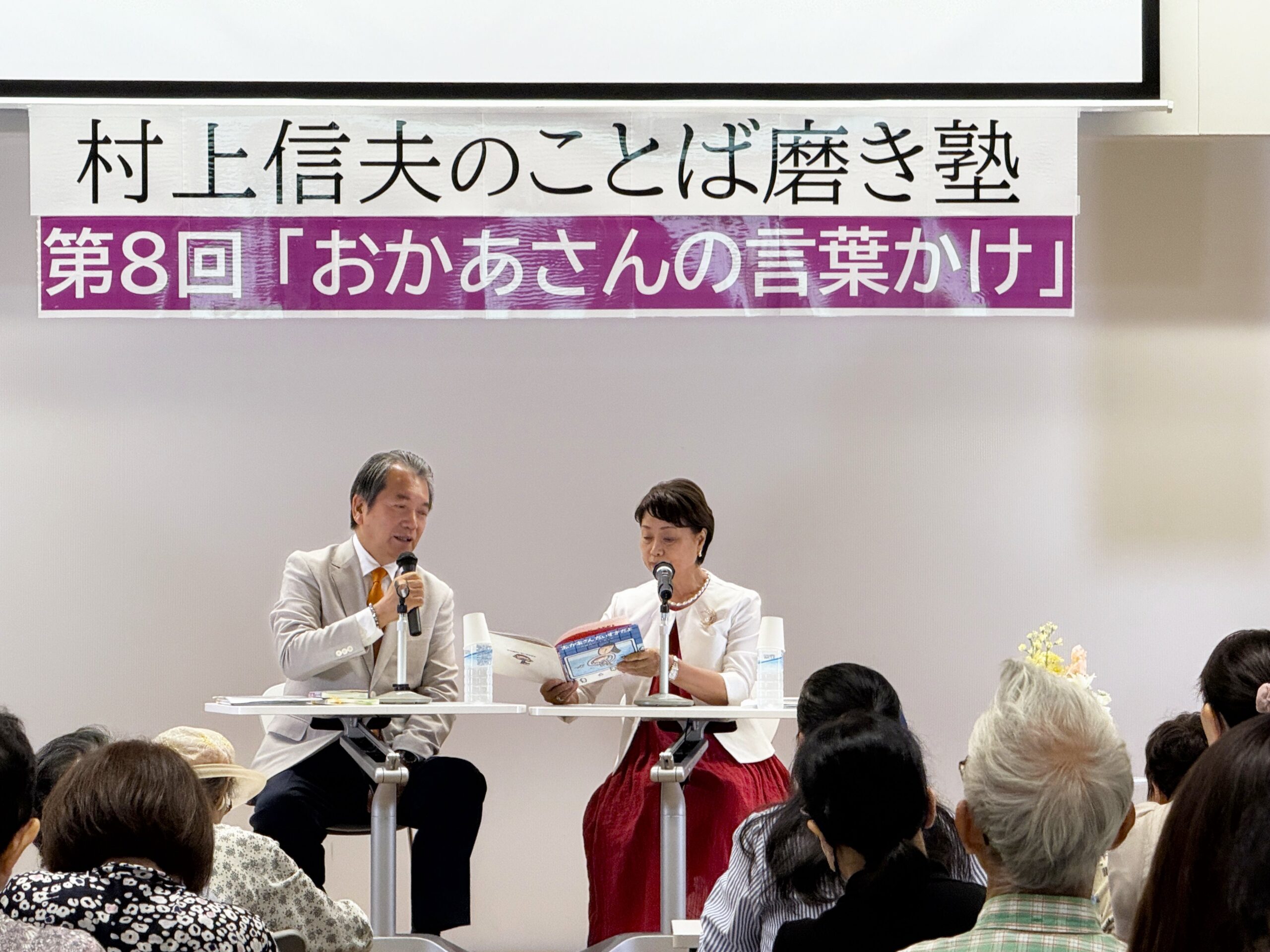 令和7年9月13日、ゲストにことのは語りの木村まさ子さんをお迎えして「第8回 村上信夫のことば磨き塾」を開催しました。