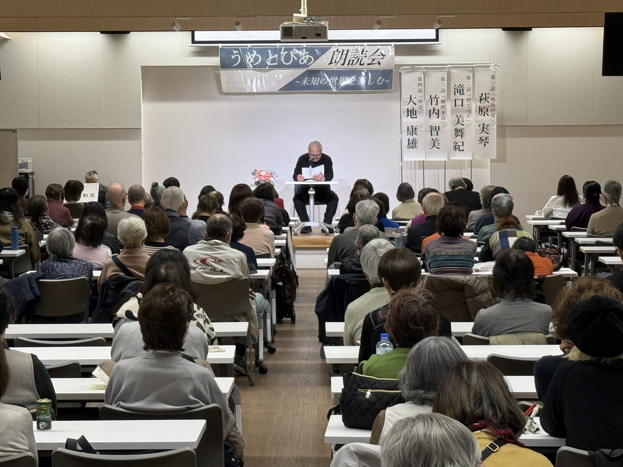 令和8年3月14日、俳優の大地康雄さんと「こうばこの会」のメンバーをお迎えした、第7回『うめとぴあ朗読会~未知の世界を楽しむ~』が開催されました。