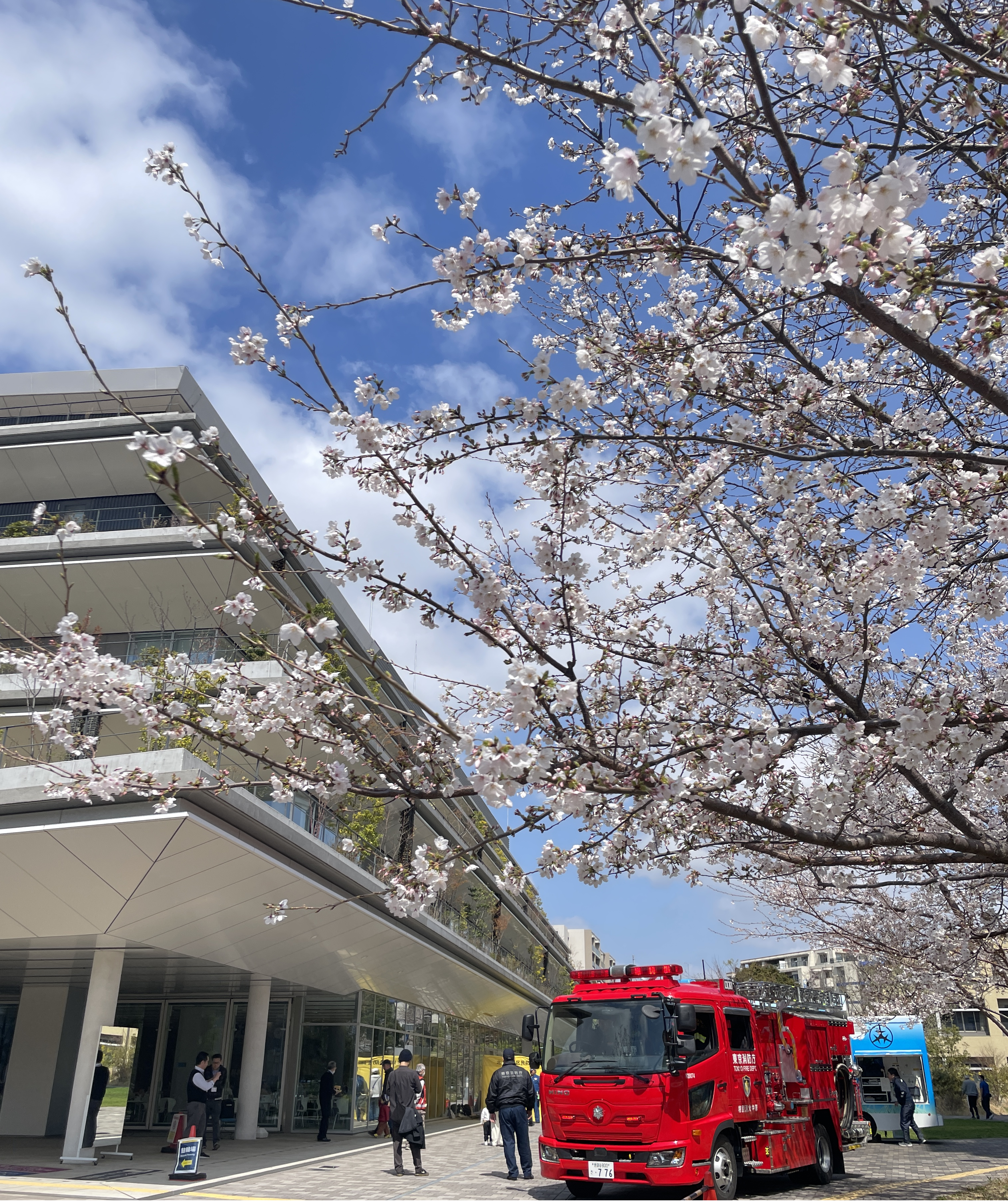 総合プラザ前の桜が八分咲きほどとなり、春らしい雰囲気の中での実施となりました。